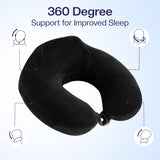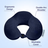 Billebon Memory Foam Travel Neck Pillow with a raised back design provides superior neck and head support for pain-free travel. Made from high-density memory foam, it adapts to your shape for ultimate comfort. The breathable, washable cover keeps you cool, while the snap button ensures a secure fit. Perfect for flights, road trips, and home use.