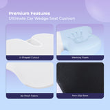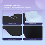 The high-density memory foam wedge cushion elevates your seating position, improves road visibility, and reduces pressure on the hips and tailbone. It supports proper posture during long drives, daily commutes, and road trips while relieving lower back strain. -