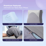 The memory foam neck headrest offers optimal cervical support, relieving neck tension and stiffness. It enhances upper-body alignment, making long drives more comfortable and reducing strain on the shoulders and neck. -