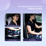 The contoured lumbar pillow maintains the natural curve of your spine, reducing lower back stress and improving posture. Ideal for drivers and passengers, it provides targeted support to prevent fatigue during extended journeys. -