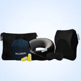 1. Memory Foam Neck Pillow Set: Ergonomic arc design for optimal neck support and pain relief. Adjustable snap buttons for a perfect fit. Comes with a pouch, eye mask, and earplugs for uninterrupted rest.